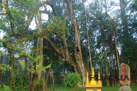的曼短佛寺,傣語稱之為"瓦拉扎探",位于縣城西南約10公里。是當(dāng)?shù)卮鲎逋麖氖伦诮涛幕顒?dòng)的中心。據(jù)史籍記載,佛寺始建于950年(時(shí)為大理政權(quán)),距今已有千余年歷史,是小乘佛教傳入后 早興建的佛寺之一。