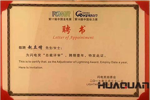 名展迎名企。作為上海動力展的常客,山東華全動力不僅再次攜展品入會參展,與世界各國的前沿技術和先進理念碰撞、交流,而今年展會對于華全公司來說,更增添了一份特殊的意義。因為,就在展會即將開啟之際,山東華全動力股份有限公司總經理趙立增先生正式獲得了2017年上海動力展閃電獎“總裁評審”的聘書。